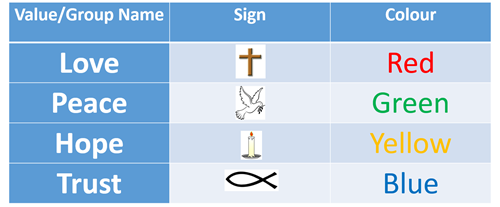 We have 4 Fellowship Groups, where the children come together to work on various activities. These groups are also used as part of our positive reward system around the academy.