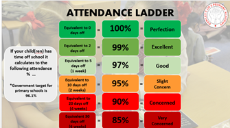 As an Academy, we have a target of 96.1% attendance, however we strive to achieve as close 100% as we can.