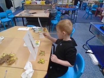 After reading 'Leaf Man' we painted our own leaf pictures.